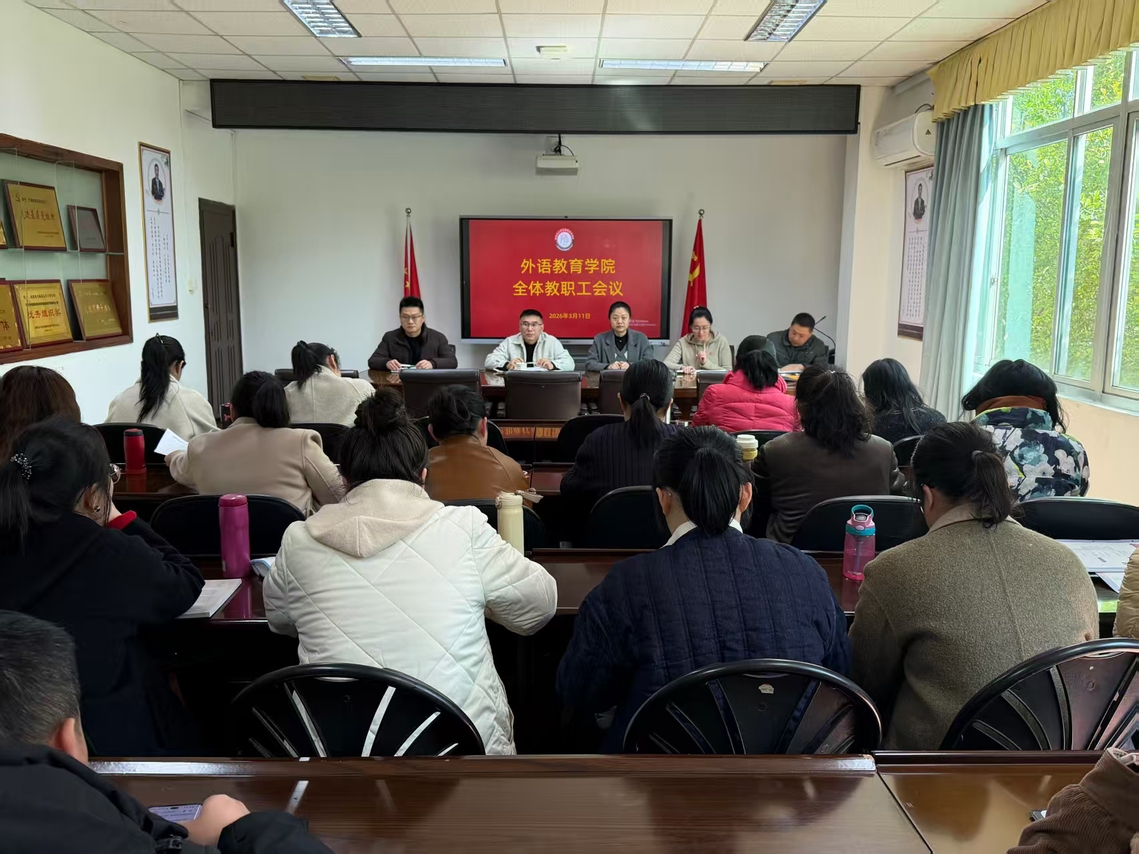 2026年3月11日下午,外语教育学院在金山校区大会议室召开2025—2026学年第二学期期初工作会议。会议由陈文华院长主持,学院全体教职工出席会议。