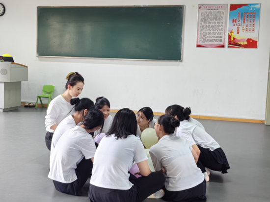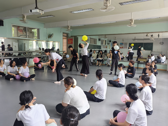 本节课以“产教融合、艺术赋能、普特融合”为主线,聚焦特殊儿童专注力训练的身心舞动方法。柯咏老师通过“问题引导—概念讲解—实践操作—迁移应用”的教学闭环,以气球为媒介,巧妙搭建多感官体验场景:引导学生通过触觉感知气球的弹性与质感,通过视觉追踪气球的运动轨迹,通过动觉探索身体与气球的互动方式,在沉浸式体验中深入理解 “力效” 在动作表达中的核心作用,为后续特殊儿童专注力训练方法的学习奠定坚实基础。课程将“爱的教育”思政理念自然融入教学全过程,实现专业知识传授与价值引领的同频共振。在 “与气球对话” 核心实践环节,让学生通过弹、摸、拍等不同力效动作探索身体与情感的联结,在实践中领悟 “以特需儿童为中心” 的教学理念,学生在小组讨论汇报中展现出良好的知识迁移能力,共情能力与专业素养得到双重提升,充分印证了 “艺术赋能特教专业” 的教学成效。