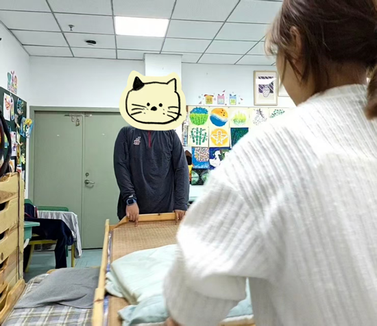 在熟悉教学模式后,实习生逐步参与到儿童生活起居照料中,协助工作人员完成特殊儿童的日常护理工作,在搬床、整理生活物品等细节中,耐心关注儿童的需求与情绪,用细致的服务为孩子们营造安全舒适的生活环境,深刻体会到特殊教育中“生活即教育”的理念内涵,践行师德情怀。