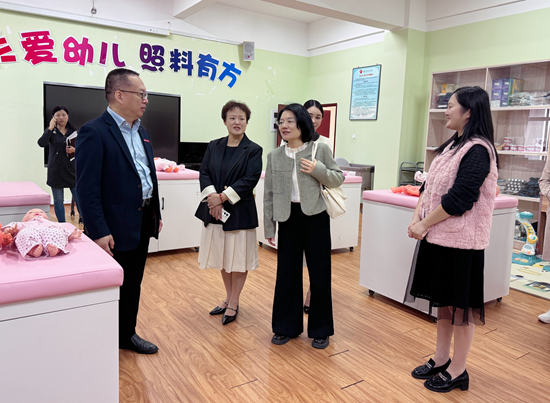 来宾一行参观了学前教育学院学前教育专业群产教融合实训基地,详细了解了实训基地的功能、实训理念、实训文化、实训体系和人才培养成果等,对我院先进的教学理念、丰富的教育资源、"岗课赛证" 综合育人成效等表示高度认可与赞赏,对我院在中华优秀传统文化传承创新与专业教育融合方面的探索给予高度评价。