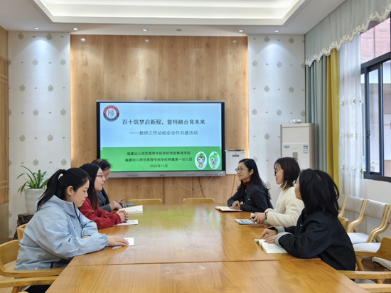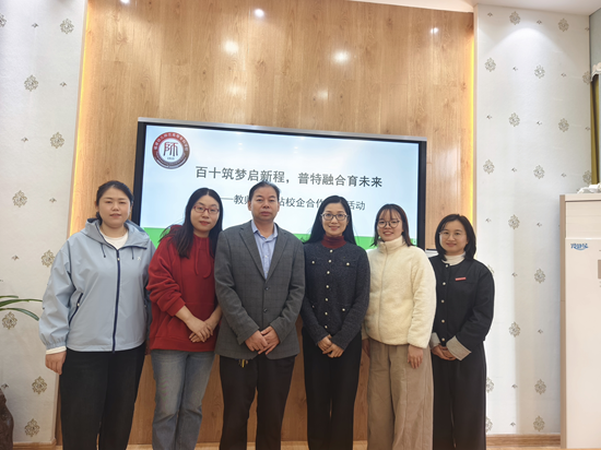 为纪念我校办学110周年,深化产教融合,构建普特融合新格局,2025年11月28日,学前教育学院特教专业负责人王先达带领特教教研室主任谢冰清、教研室教师杜晨阳、焦静、阙南玉等赴我校附属第一幼儿园开展“百十筑梦启新程普特融合育未来”教师工作站校企合作共建活动。我校附属第一幼儿园副园长彭如玲也出席了此次活动。此次活动既是“凝心聚力 创新精进”专业建设系列活动的重要实践,也是学校百年育人初心在特殊教育领域的生动延续。