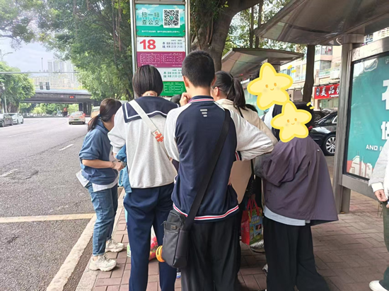 基地老师与实习生带领儿童进行社会实践——如何看公交车站牌