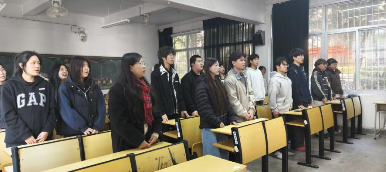 全体成员肃立,齐声高唱中国共产主义青年团团歌《光荣啊,中国共青团》。激昂的旋律、铿锵的歌声,彰显了支部团员昂扬向上的精神风貌,为本次组织生活会奠定了庄重而热烈的氛围。