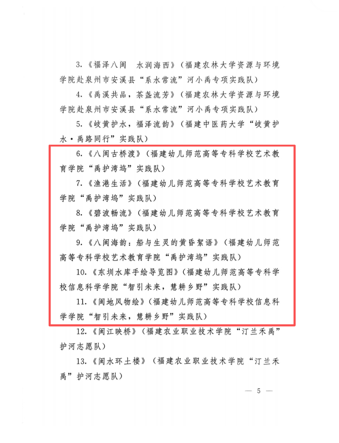 近日,在共青团福建省委、福建省河长制办公室、福建省学生联合会联合主办的2025年福建省大学生暑期“三下乡”社会实践“河小禹”专项行动、“幸福河湖·青马学员说”微视频大赛评选中,我校表现出色,荣获多项表彰,充分展示了我校青年学子在生态文明社会实践中的卓越风采和扎实成效。