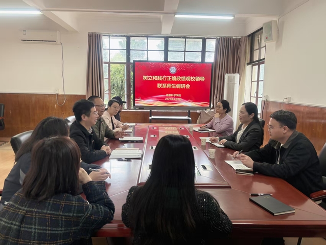 4月8日上午,校长郑晓冰、副校长谢石城深入信息科学学院,召开“树立和践行正确政绩观”校领导联系师生调研工作会,党政办主任刘舒敏陪同调研,信息科学学院班子成员、骨干教师等参加会议。