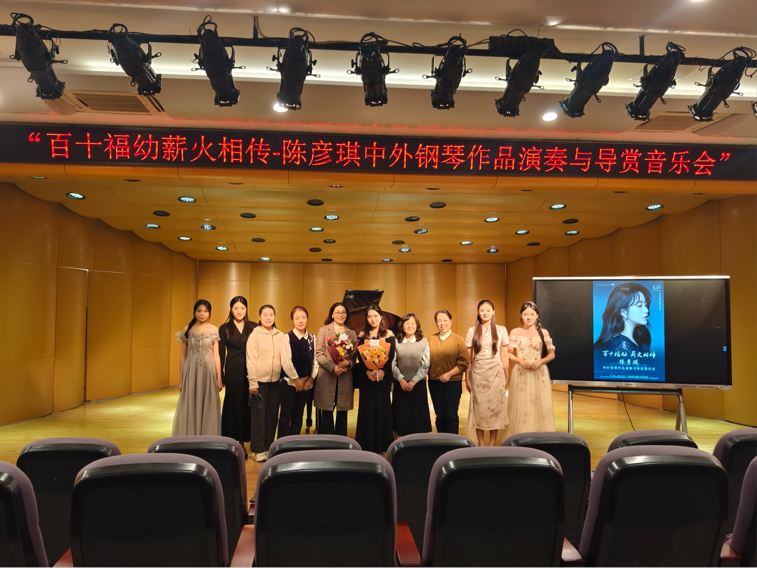 11月18日晚上19点,“百十福幼,薪火相传—陈彦琪中外钢琴作品演奏与导赏音乐会”在音乐厅举行。本次音乐会由学校科研处、艺术教育学院音乐舞蹈教研室承办,是福建幼儿师范高等专科学校办学110周年教学成果汇报系列活动之一,是我院开展美育课程思政的一次创新实践,也是学院教工第一党支部(全国党建工作样板支部培育创建单位)、“艺术教育专业群”省级职业院校教师教学创新团队、王萍萍教授工作团队的党建及教学成果展示。莅临音乐会现场的有马克思主义学院院长伊文婷教授、艺术教育学院院长王萍萍教授,副院长颜艳副教授,音乐与舞蹈研室王政副教授、邓晓红老师等。