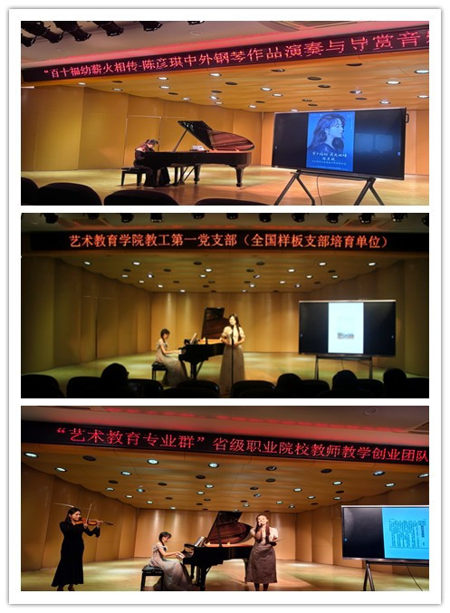 此次音乐会内容丰富,形式多样,既有中外经典钢琴作品演绎与导赏,又有黄世明先生音乐、诗歌等艺术作品的赏析与音乐教育文献解读,音乐会以演奏导赏+理念分享的创新形式让师生沉浸式感受黄世明先生将人文情怀与教育理念融入艺术创作的独特魅力,领悟其“以美养德、以艺启智”的育人智慧。这也彰显艺术教育学院青年教师在省级职业院校教师教学创新团队的带领下,于传承中创新,在互鉴中成长的担当使命,是团队不忘初心,携手赋能以美育人的生动实践。
