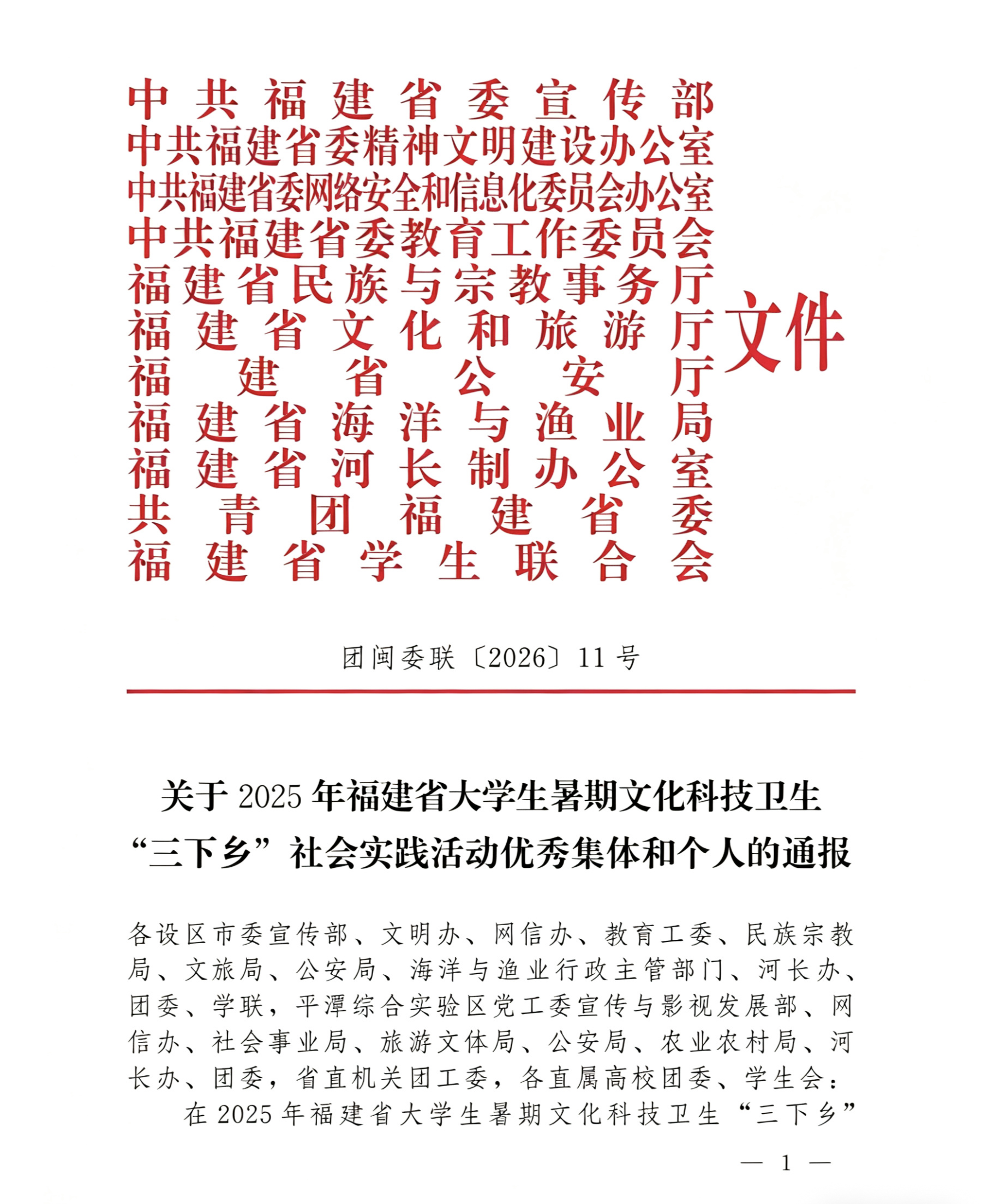 【喜报】我校在2025年福建省大学生暑期“三下乡”社会实践活动中荣获多项省级表彰