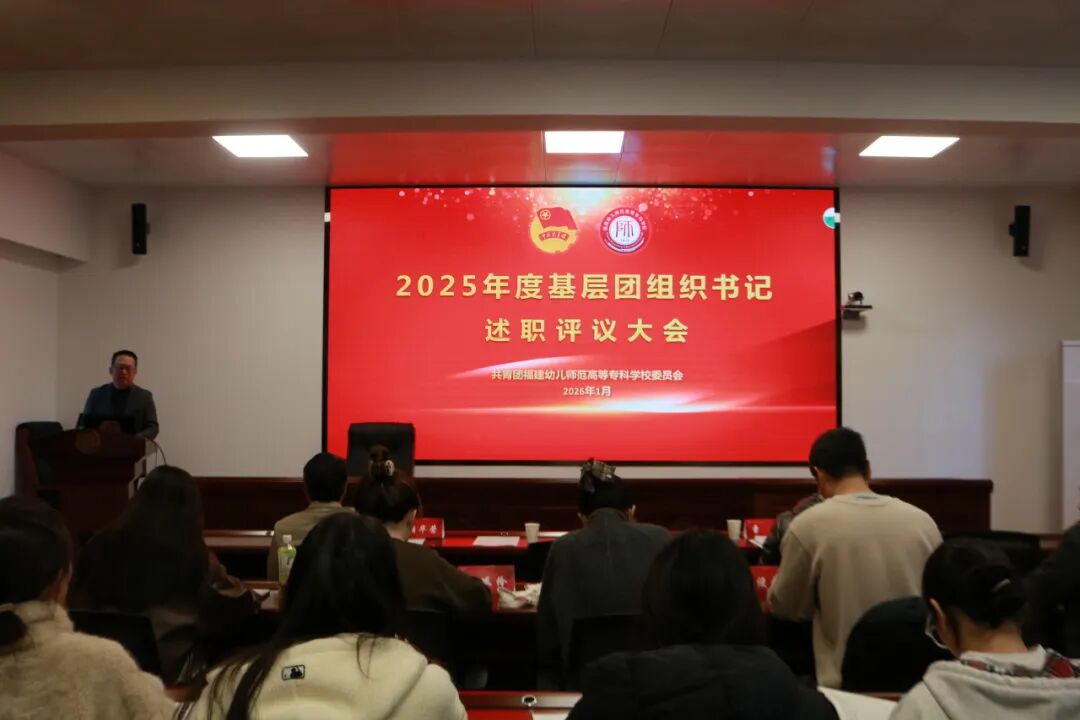 为深入学习贯彻习近平总书记关于青年工作的重要思想,全面总结2025年度学校共青团工作成效,推动基层团组织建设提质增效。1月14日,福建幼儿师范高等专科学校2025年度基层团组织书记述职评议大会在校办114会议室隆重召开。校党委副书记邹雄伟,学工部、校团委等部门负责人出席会议。全校各二级学院团委、直属团支部书记参加述职。会议由校团委书记胡华荣主持。