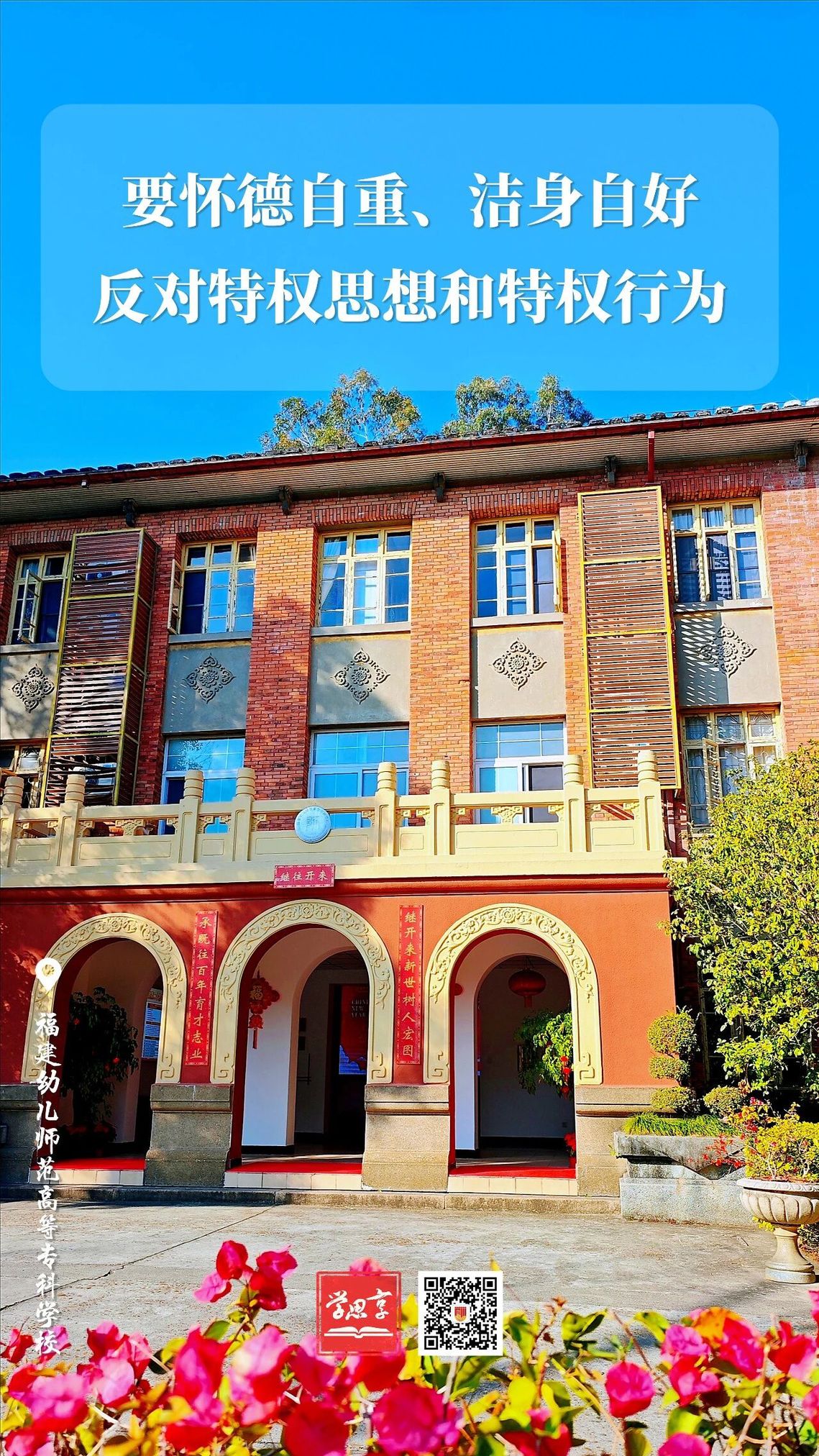 2月1日,“福建纪检监察”微信公众号推送学校选送的“学思享 ”——要怀德自重、洁身自好。