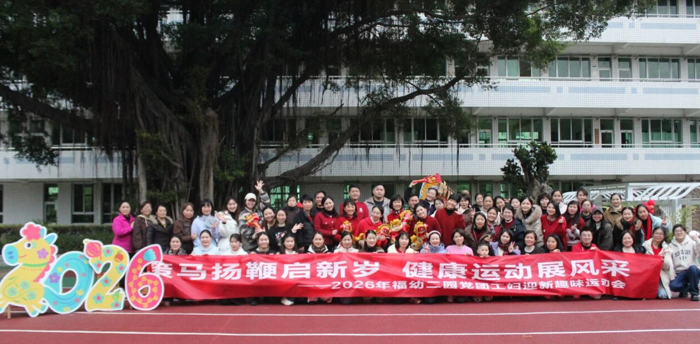 岁末春临,年味渐浓。为推动党建与园所文化深度融合,缓解教职工期末压力,增强团队凝聚力,2月1日下午,福幼二园党支部、工会、团支部联合举办“策马扬鞭启新岁,健康运动展风采”迎新趣味运动会,全园教职工齐聚白马操场,共度欢乐时光。