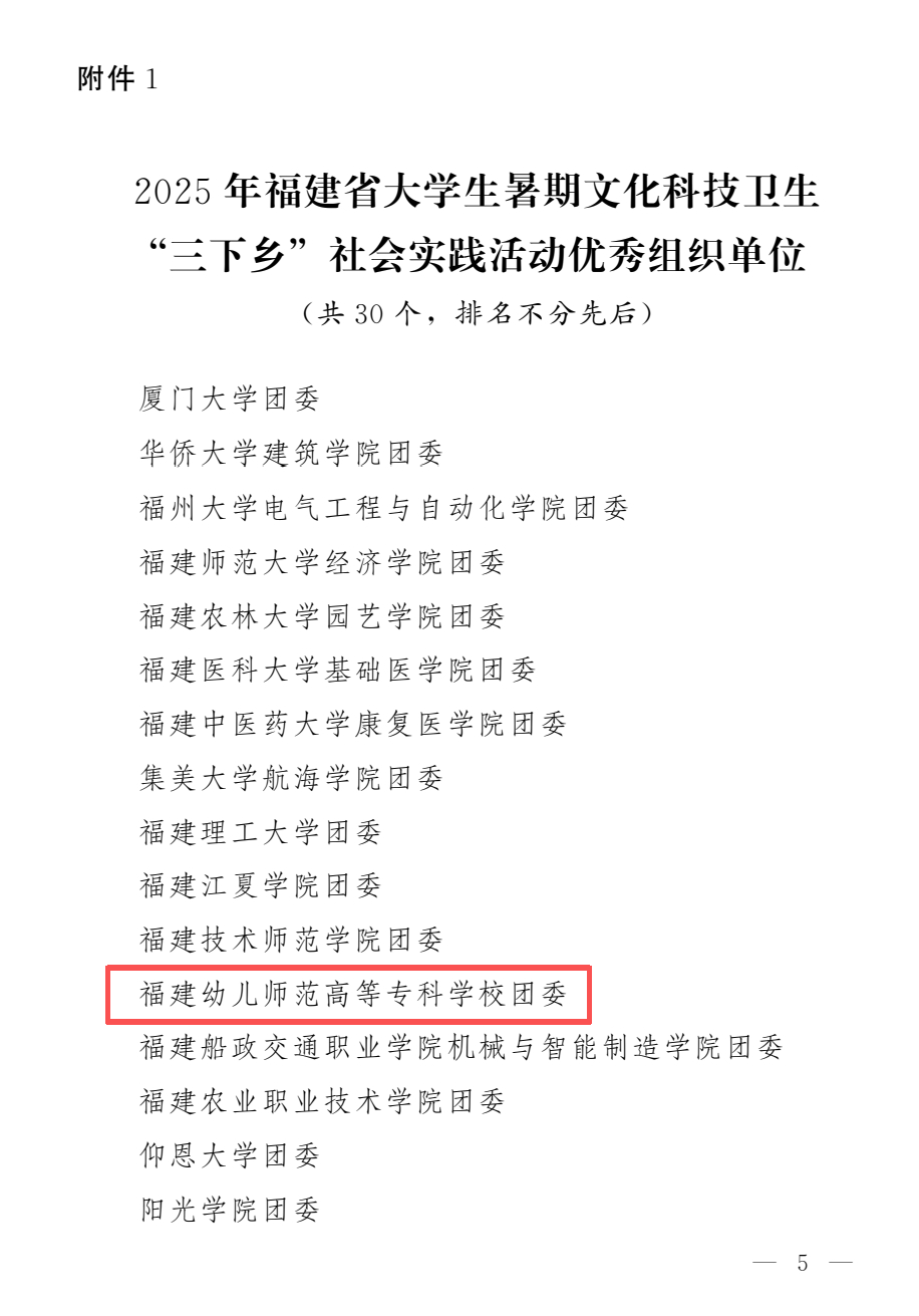 近日,中共福建省委宣传部、省委文明办、省委教育工委、团省委、省学联等十一部门联合发布了《关于2025年福建省大学生暑期文化科技卫生“三下乡”社会实践活动优秀集体和个人的通报》。我校在本次评选中喜获三项省级荣誉,成绩斐然。