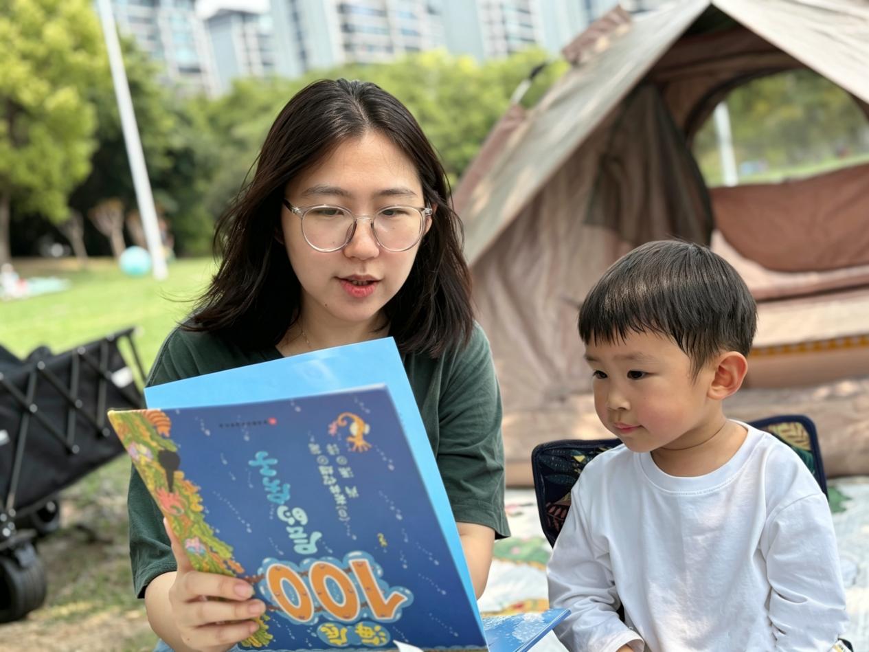 榕树小舞台、户外读书角、彩虹树读书区……一个个充满童趣的角落被精心打造成故事小剧场,“沐春故事汇”在这里温情上演、轮番绽放。大班的哥哥姐姐牵手小班弟弟妹妹,绘声绘色地讲述着精心准备的绘本故事,书页轻翻间,温暖与智慧悄然传递。