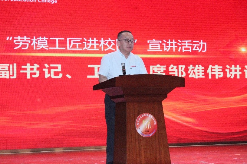 活动最后,邹雄伟作总结讲话。他代表学校对两位劳模的精彩分享和市总工会直属工会的大力支持表示衷心感谢。邹雄伟指出,在“五一”国际劳动节来临之际,这场跨越传统服务与数字前沿的劳模对话,具有特殊而重要的意义。他勉励广大同学:要深刻理解平凡与伟大的辩证关系,在精益求精中成就价值,于细微之处彰显不凡;要让专业技能成为奉献社会、报效家国的坚实根基,在勤学苦练中夯实底气、在实干笃行中增长才干;要主动融入家校社协同育人的大格局,自觉传播劳模故事、践行劳动精神,使其融入班级、宿舍乃至未来的工作岗位,真正让热爱劳动、崇尚技能成为青春最鲜亮的底色。他号召全体师生以劳模为榜样,静心学习、锤炼本领,不畏挑战、勇担使命,以奋斗之姿、劳动之手,书写无愧于时代、无愧于青春的崭新篇章。